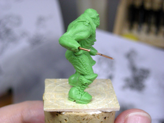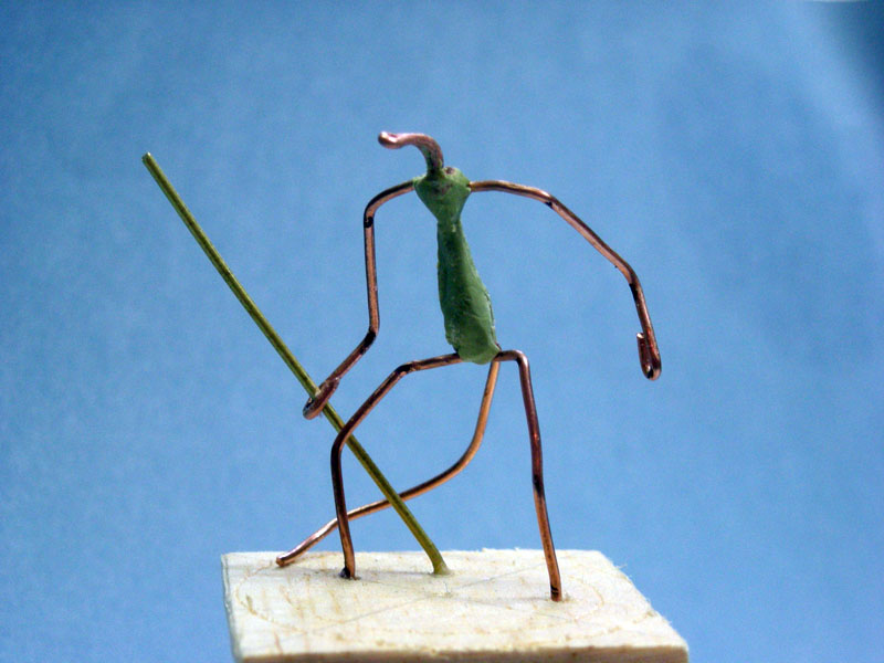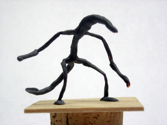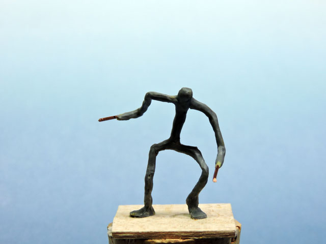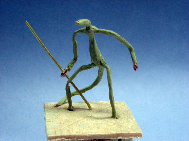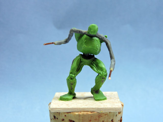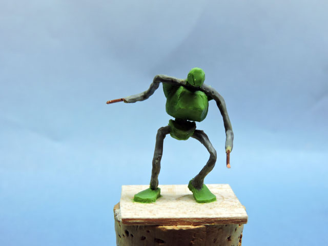 L’armature est faire de fil de cuivre reconvert de Milliput pour la rendre rigide, avec une couche d’Uro pour que la Sculpey adhère bien.