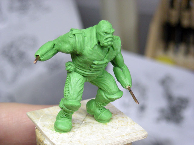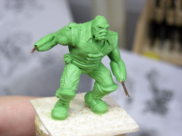 Armature made of copper wire + Milliput to harden it, layered with Uro to make Sculpey stick to it.