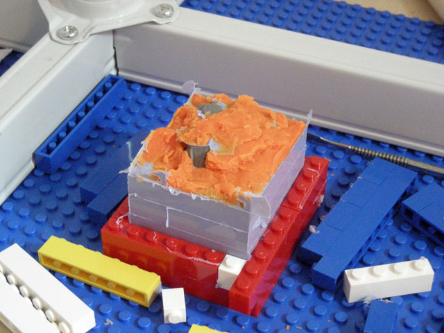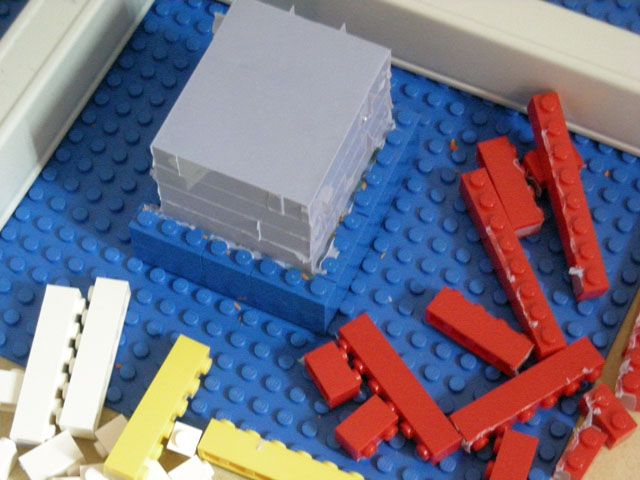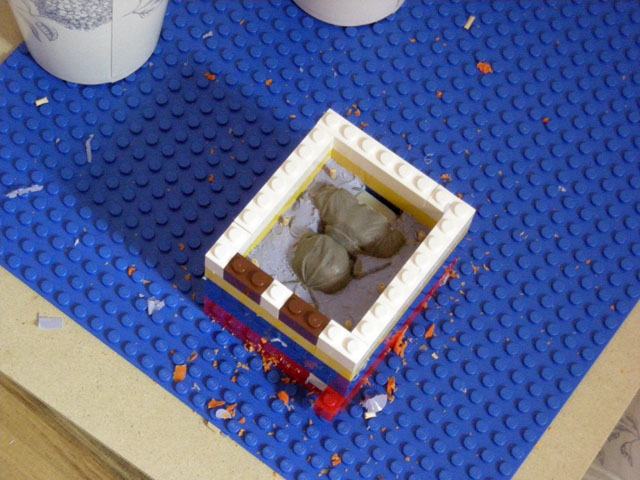 La première chose à faire est de construire un coffrage avec des légos, c’est un peu comme retourner à la maternelle :).