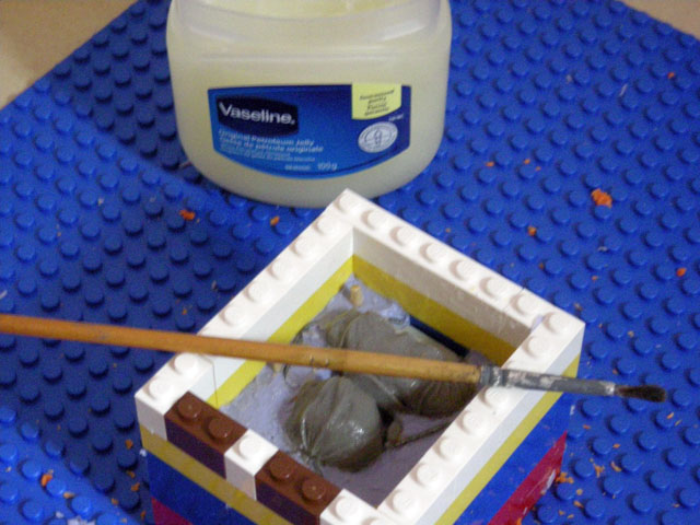 Brush some Vaseline gel all other your mold and your master. The goal is to be able to detach the two parts of the mold easily once the silicone has dried.