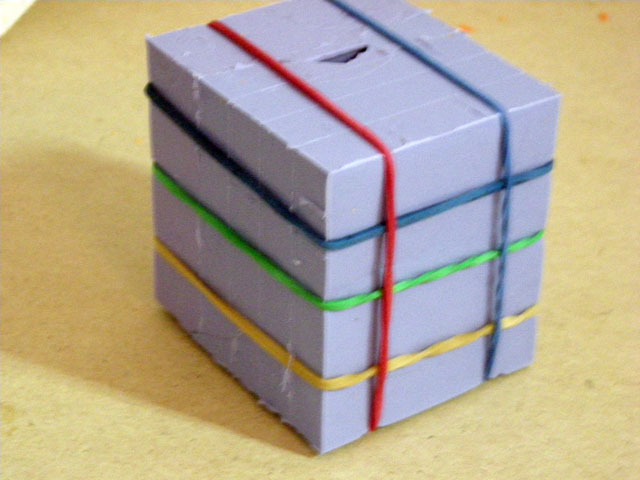 Mettez les deux parties du moule en contact et attachez les avec des rubans de caoutchouc.