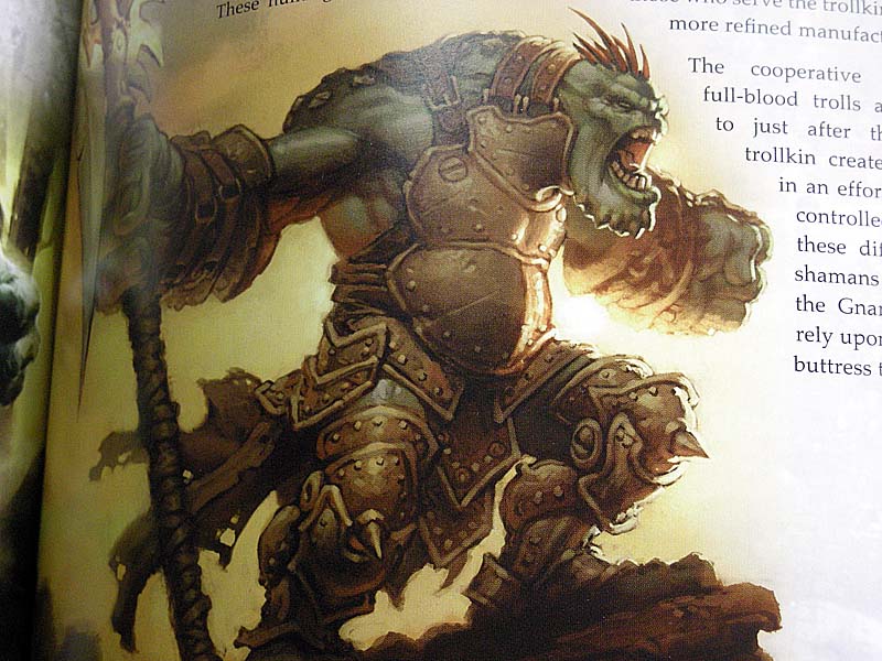 J’utilise cette illustration du livre d’armée des Trollblood pour l’inspiration mais pas comme une référence à suivre à la lettre.