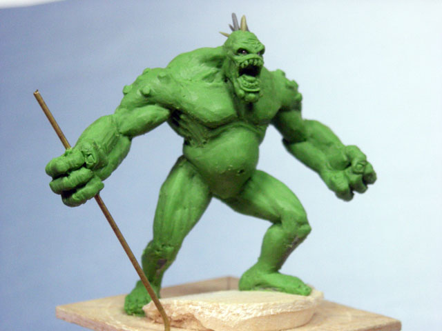 Une peinture d’un tirage de ma sculpture de trollkin skinner.